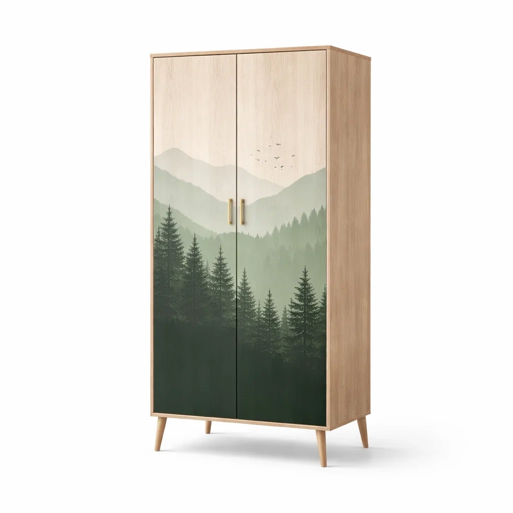 Armadio in legno chiaro con 2 ante e 3 cassetti
