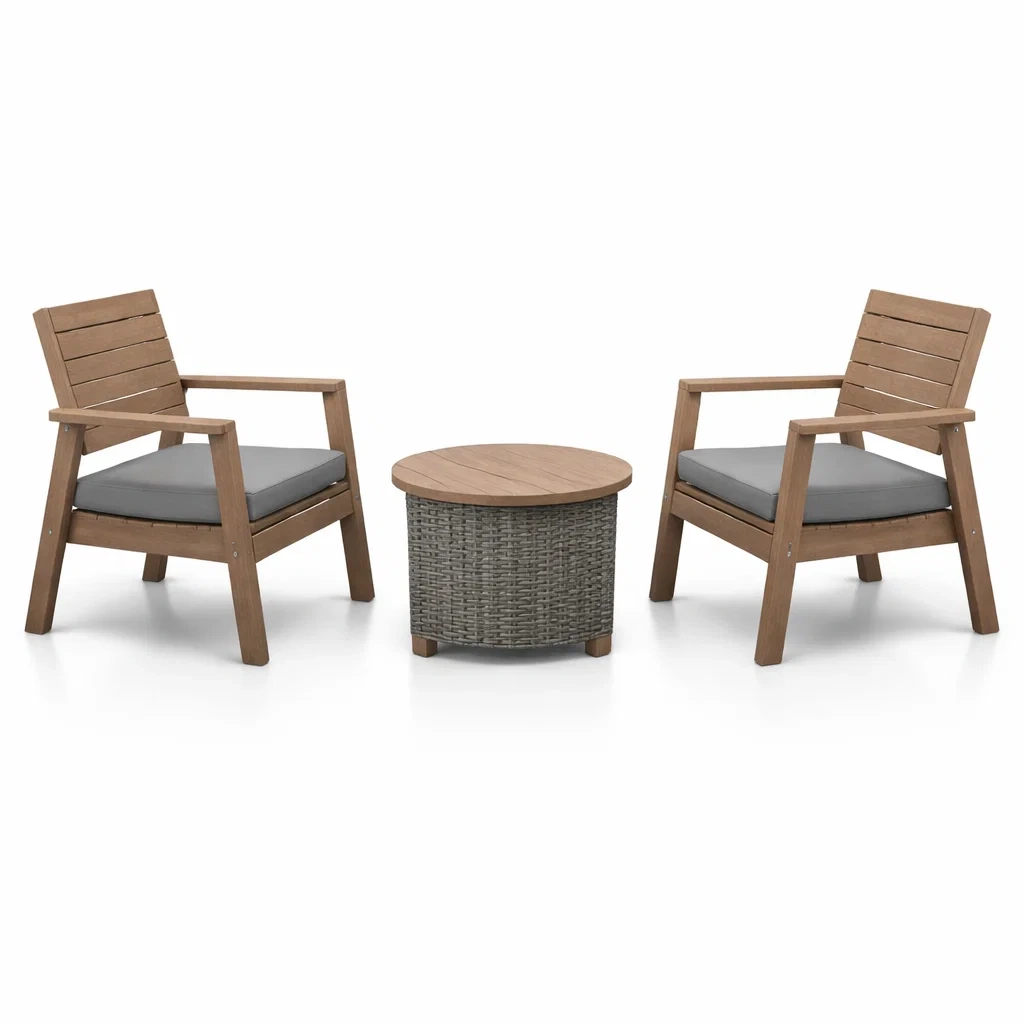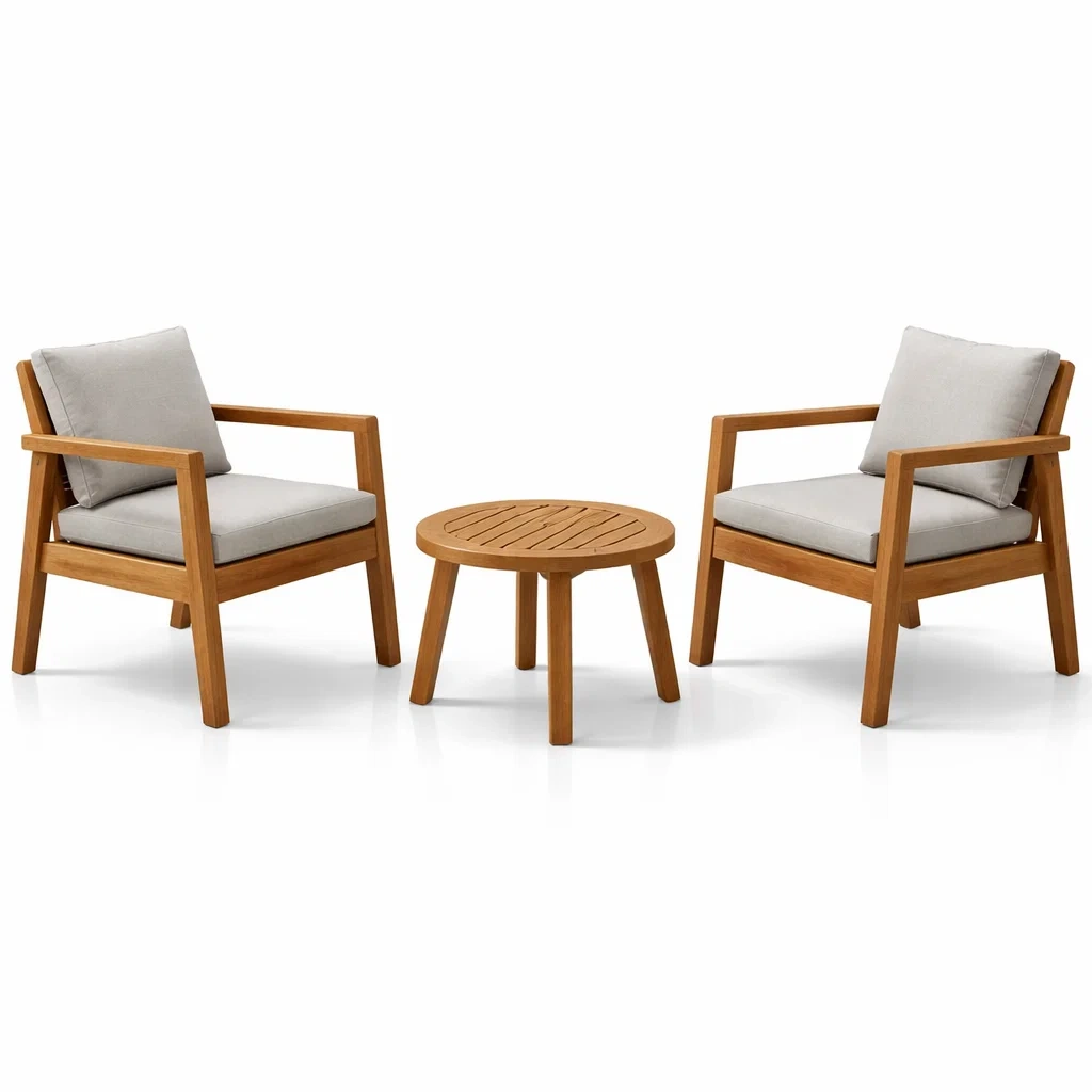 Set da relax piccolo in legno con 2 poltrone e tavolino