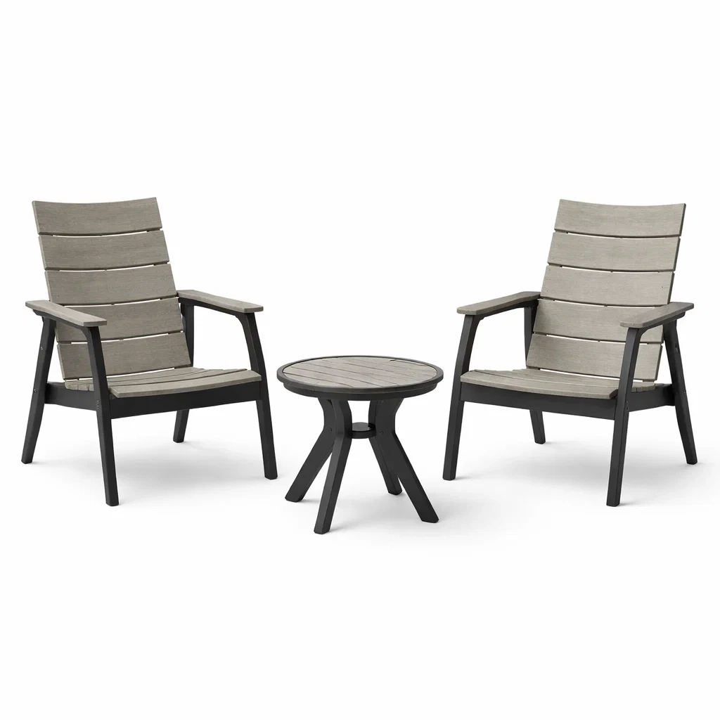 Set da relax piccolo in legno composito e alluminio con poltrone e tavolino grigio