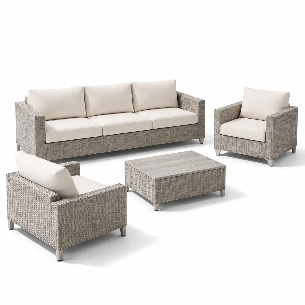 Set di divani da esterno in rattan sintetico con tavolo e cuscini beige