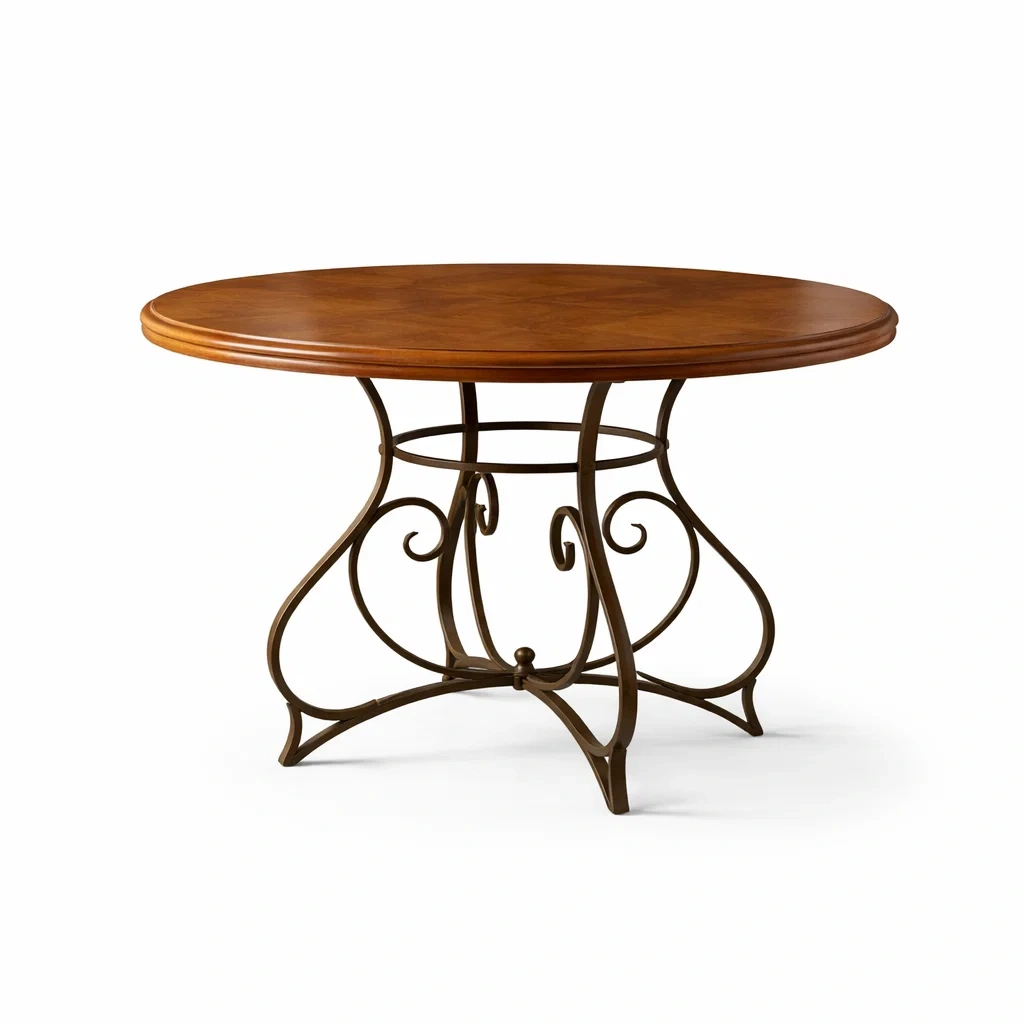 Tavolo da pranzo rotondo in legno con basi in ferro