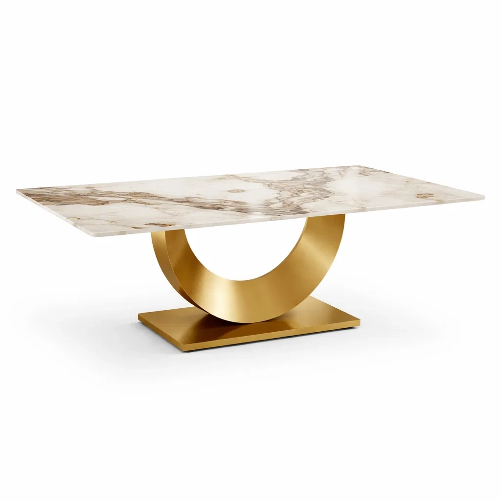 Tavolo da pranzo in marmo e metallo dorato