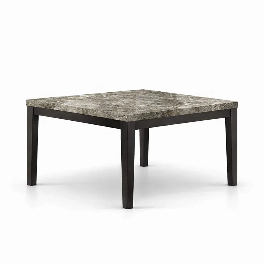 Tavolo da pranzo quadrato con piano in marmo sintetico e gambe in legno
