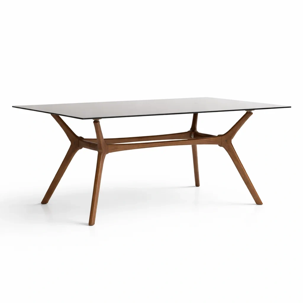 Tavolo da pranzo rettangolare in vetro e noce