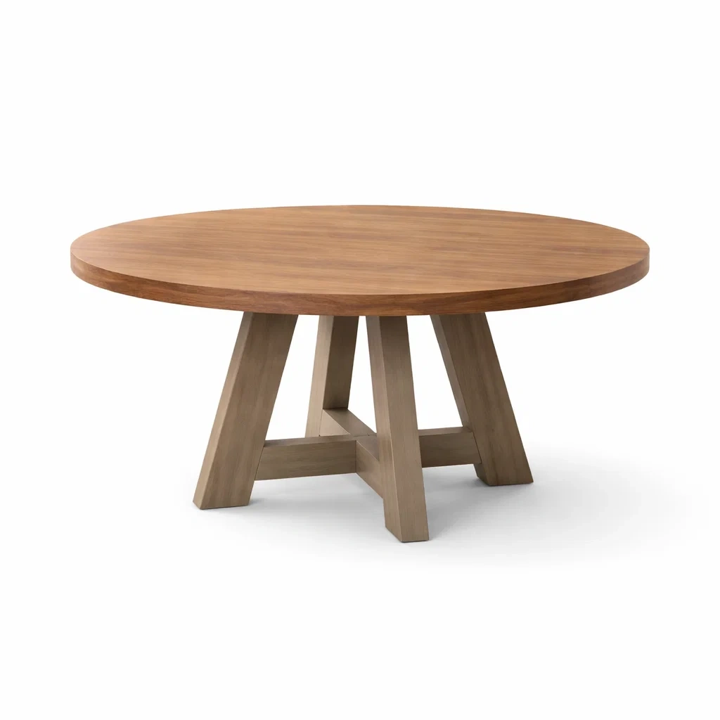 Tavolo da pranzo rotondo in legno massello marrone
