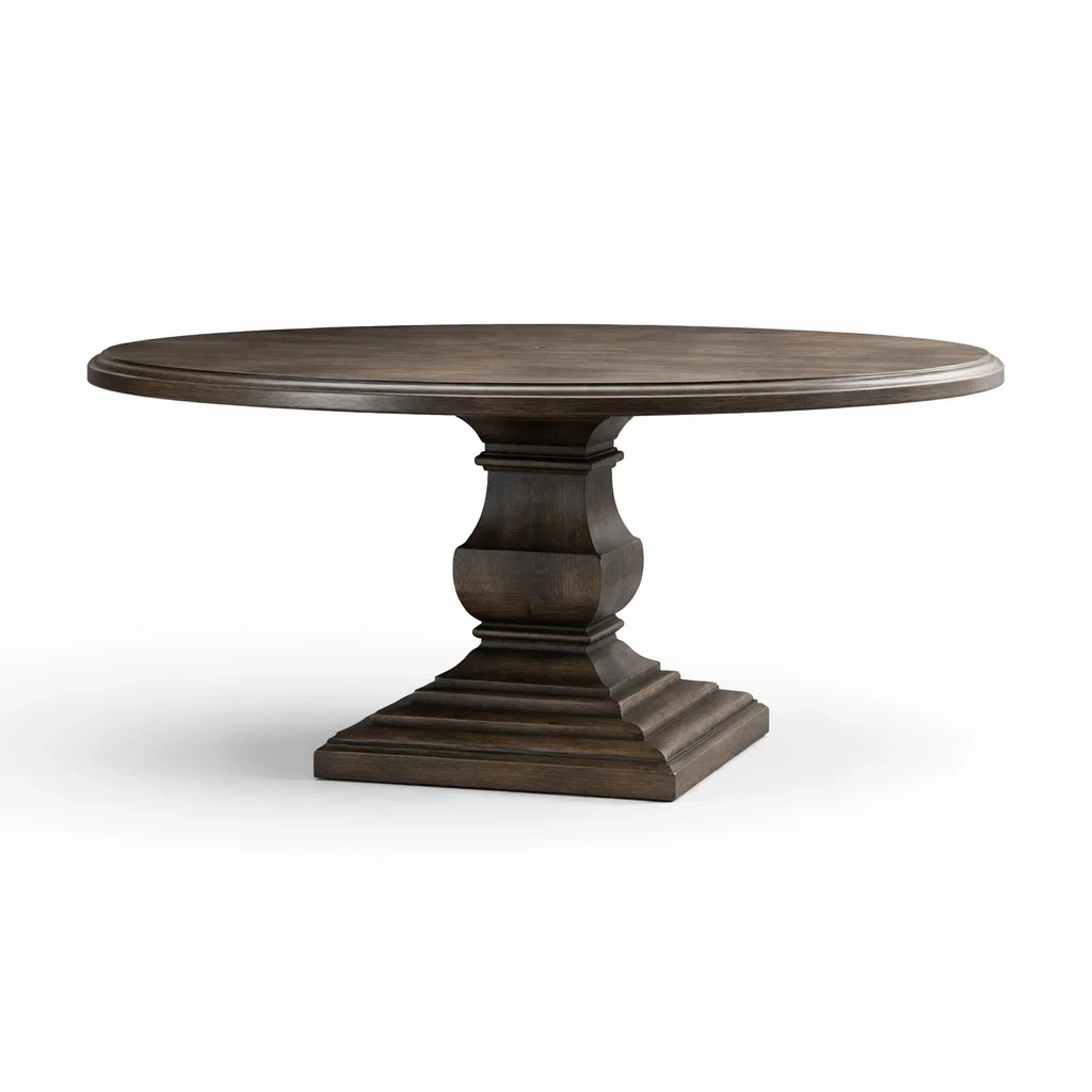 Tavolo da pranzo rotondo in legno massiccio di noce