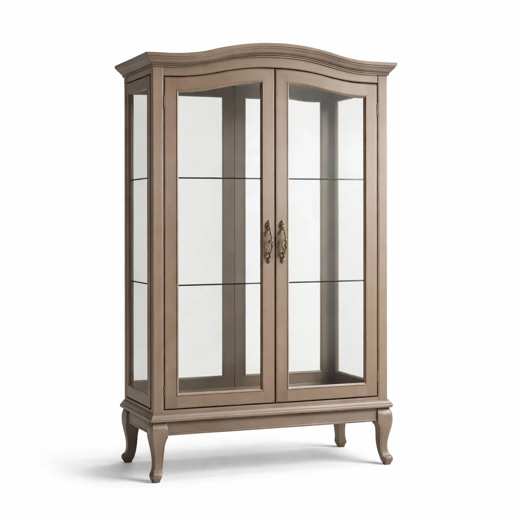 Vetrina in legno con ante in vetro temperato e piedini in metallo