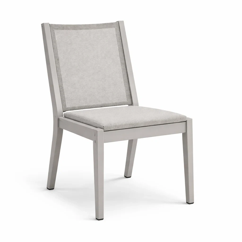 Sedia da pranzo in alluminio con seduta in tessuto poliestere grigio