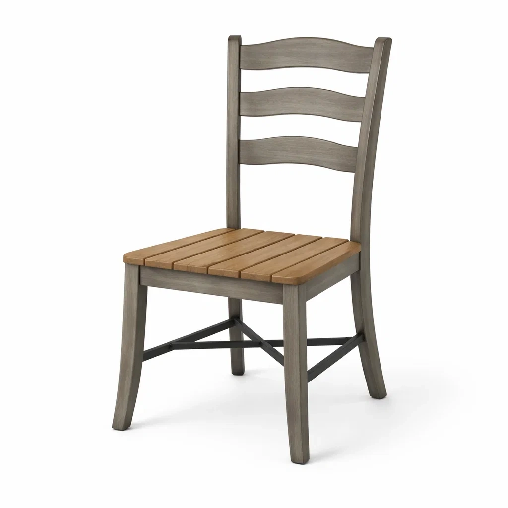 La sedia presenta una seduta in legno massiccio e un telaio in metallo.