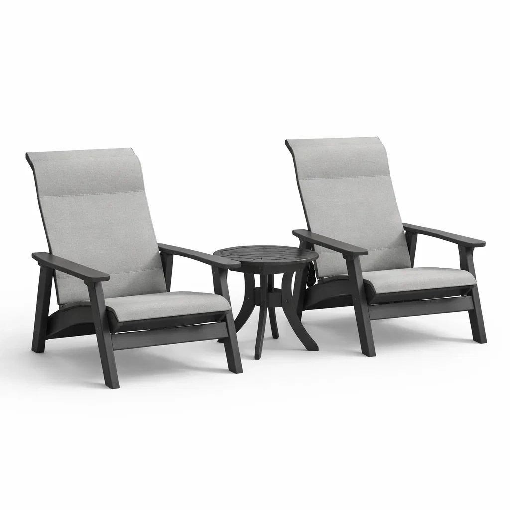 Set composto da due poltrone reclinabili e un tavolino per uso esterno.