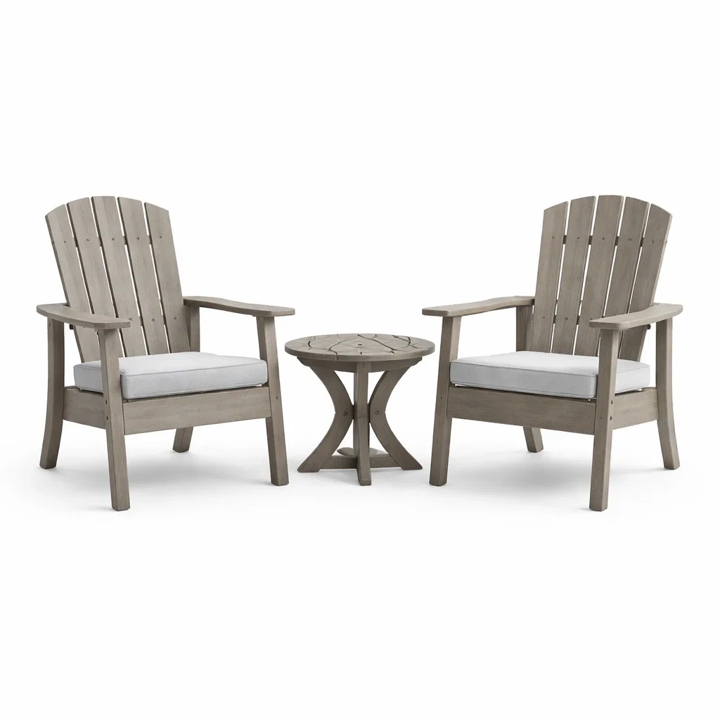 Set da relax piccolo in legno grigio con cuscini bianchi