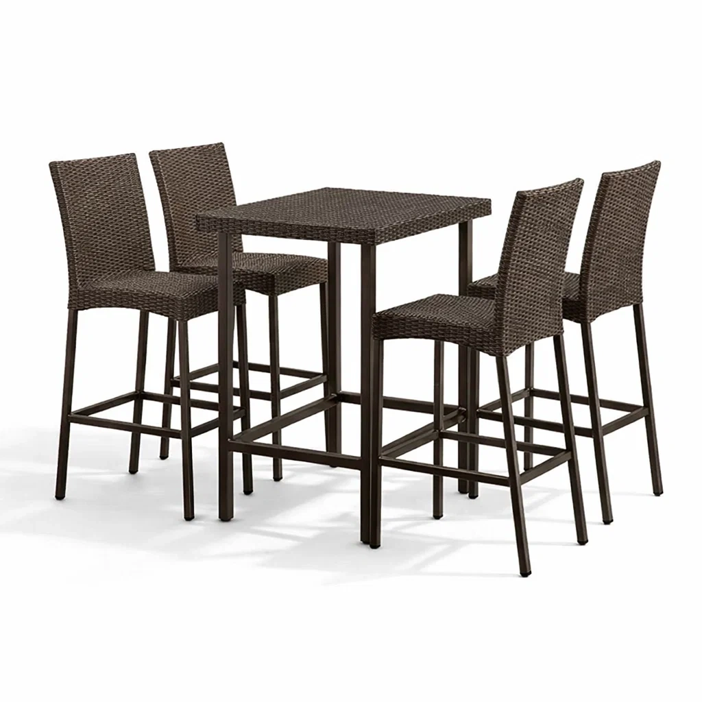Set tavolo bar e sgabelli da esterno in rattan sintetico con tavolo e 4 sedute