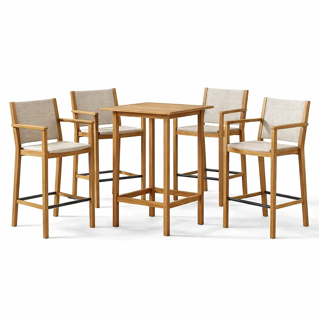Design Dettagli: Tavolo quadrato con struttura robusta, sedie con braccioli e poggiapiedi in metallo. Peso totale supportato per sedia: 120 kg.