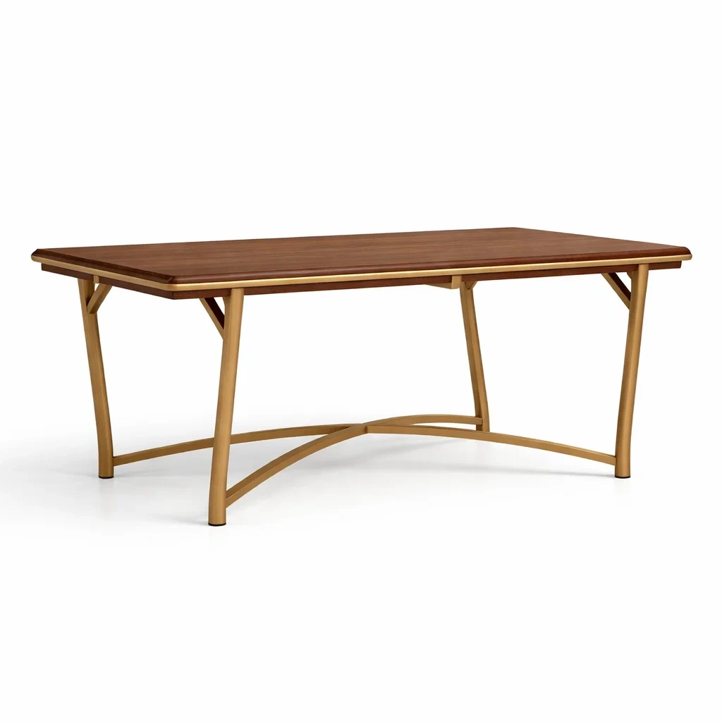 Materiale: Piano in noce, struttura in acciaio verniciato dorato
