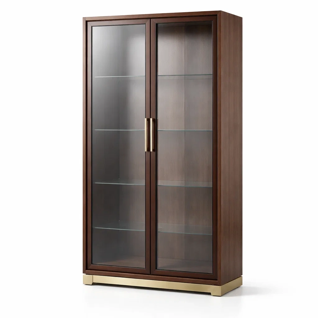 Materiali: Corpo in legno, ante in vetro temperato 5 mm, base in metallo